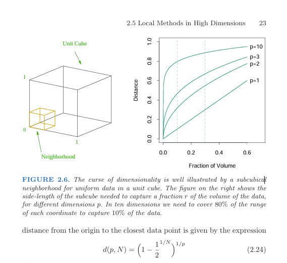 Around early 2016, I became much more interested in machine learning (ML) and dedicated a great deal of time to this subject over the subsequent 7 years. It was then that I came across the curse of dimensionality in the famous book The Elements of Statistical Learning: Data Mining, Inference, and Prediction by Hastie, Tibshirani, and Friedman. While the concept was new to me in 2016, it was actually first described by Bellman in 1961.